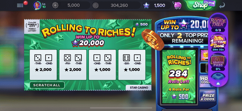 The excitement doesn’t stop there! Put your luck to the test in the Signature Lounge by scratching lottery tickets for a chance to win even more Stars. At the vending machines here, you can try your hand at games like Rolling to Riches, where matching two identical dice could win you up to 200,00 Stars!